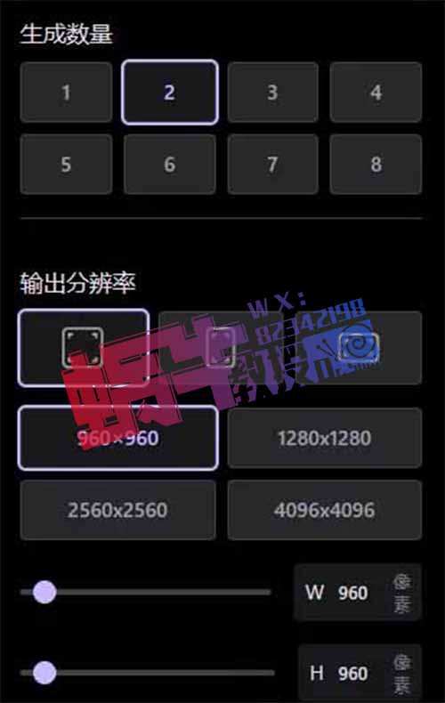 在左侧边栏,你可以自由选择生成的图片数量和尺寸。除了默认的尺寸,你还可以根据自己的需求灵活调整图片大小。