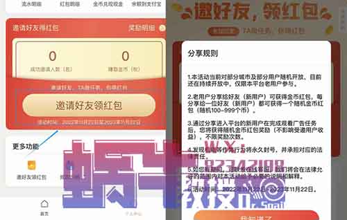 成功邀请可以获得100-999个金币,金币也是可以统一兑换成现金。