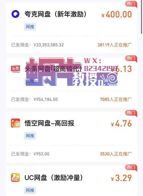 比如UC、夸克、迅雷网盘,通过发送网盘链接给用户,每有一个新下载网盘的,就能赚3-6块不等。