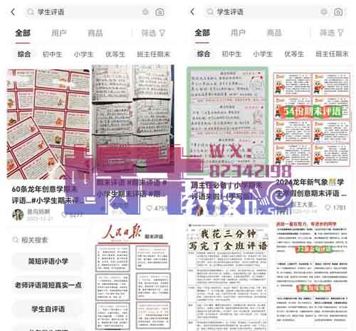 卖各阶段的评语合集(小学、初中、高中等)每个阶段卖9块9,或者会员价全包99,包永久更新。
