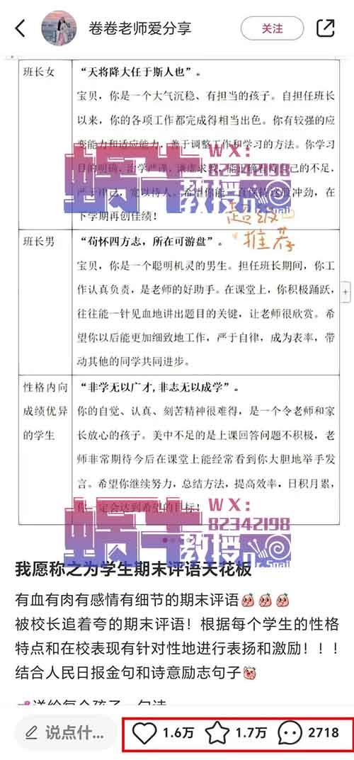 当然,也可以在我们要上的主战场——小红书,去搜索一下关键词“学生评语”。