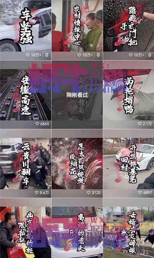 看看这个视频,整理了网上能搜索的,车祸,或者是被撞的车,加上一些文案,最主要是把这些视频与春节挂在一起,其实很多视频根本不是春节的,但是与春节挂钩,说不管车怎么样,都无法阻止回家过年的心,看看点赞转发,就知道这个视频的收益是多少。