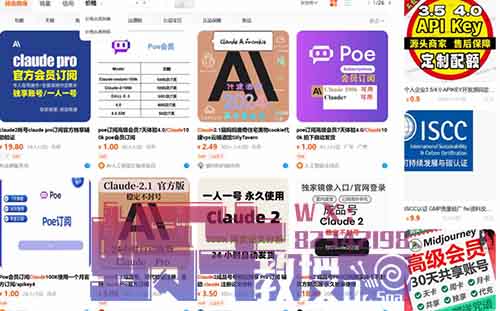 可以看到在某宝的平台上依然有很多商家在出售这些AI账号,里面还有Poe账号。