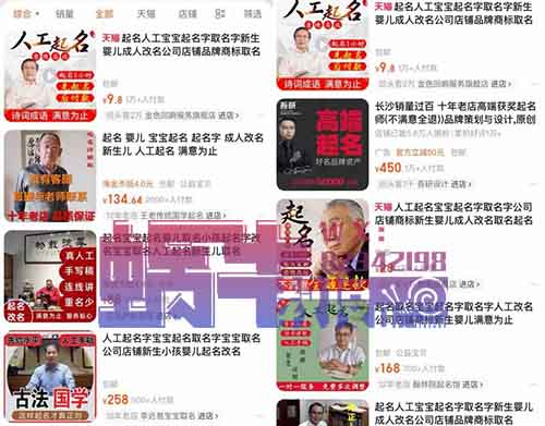 在某宝上搜索“起名”相关的产品,销量也都是几千上万