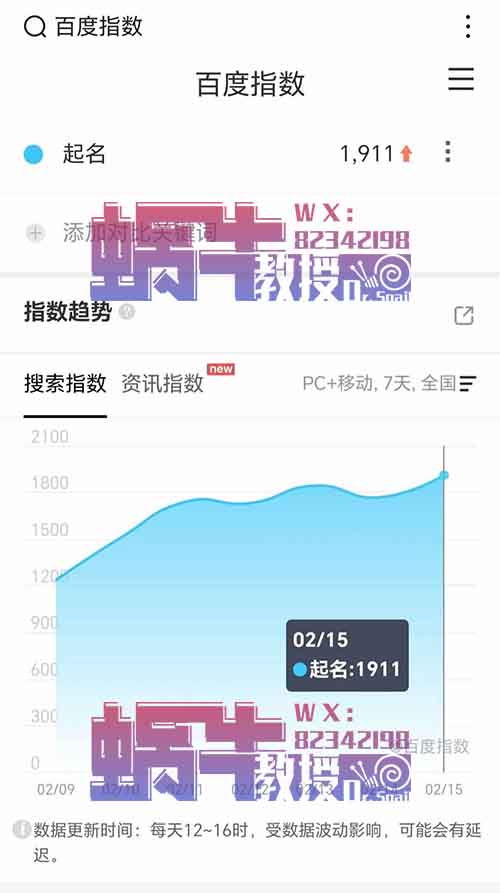 蜗牛教授也做了一下调研,发现在微信上每天搜索“起名”的指数高达1千7百多万。