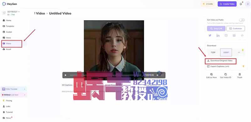 提交后,在左边选择视频板块,找到刚刚生成好的视频,然后下载下来。
