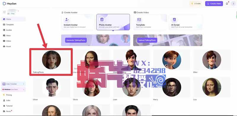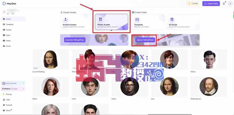然后打开Heygen官网,注册后进入主页,点击Photo Avatar也就是照片数字人功能,再把用Midjourney生成的图像上传上来,图像最好用JPG格式。(找不到Heygen官网的,公众号回复:Ai晨读号)