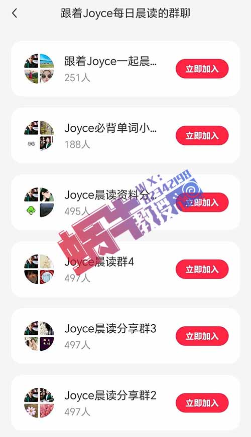 首先通过钩子,也就是免费的晨读资料,来吸引流量。引导用户进各种类型的群,通过群内转化到私域里,群内引私域更安全。