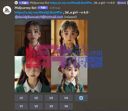 打开Midjourney(需魔法)这个软件,并给它一个/imagine的指令,复制粘贴提示词后直接生成图像,也可以使用更方便的图生图成像,多生成几次,再从生成的这些图像中选择一张自己觉得最满意的。(不会使用MJ图生图功能以及魔法的,可以公众号回复:Ai晨读号)