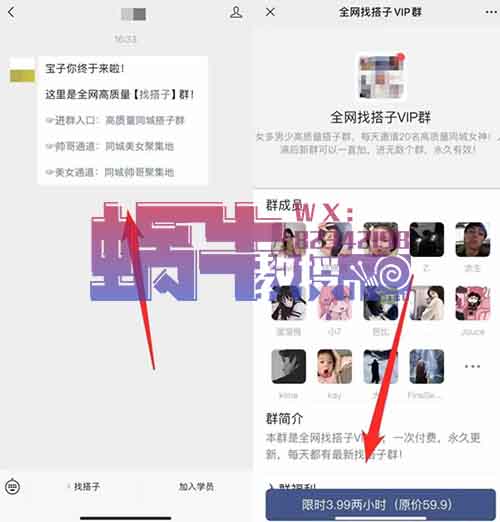 有人想要找搭子,就引流到公众号,然后搭建一个付费进群的系统,一般一个9.9-29.9,付费自动进群