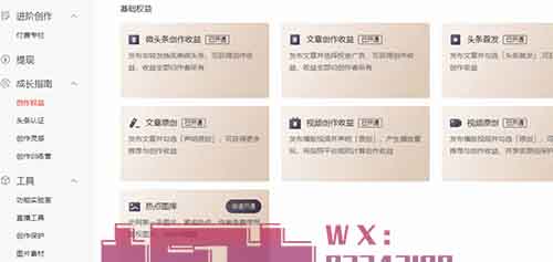 电脑版在左面的功能栏里找到成长指南,点后面的箭头,就可以看到创作权益选项了,点击进入,同样把基础权益里能开通的全部开通。