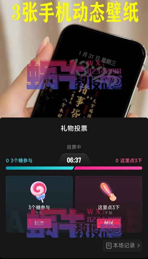 今天分享的这个玩法跟之前的抖音直播财神爷差不多,用工具把直播间搭建好后,我们只需要在旁边做一个讲解引导用户刷礼物就行,直播间的展示画面就是手机动态壁纸,人就在盘边收一下怎么领取这些好看的壁纸。