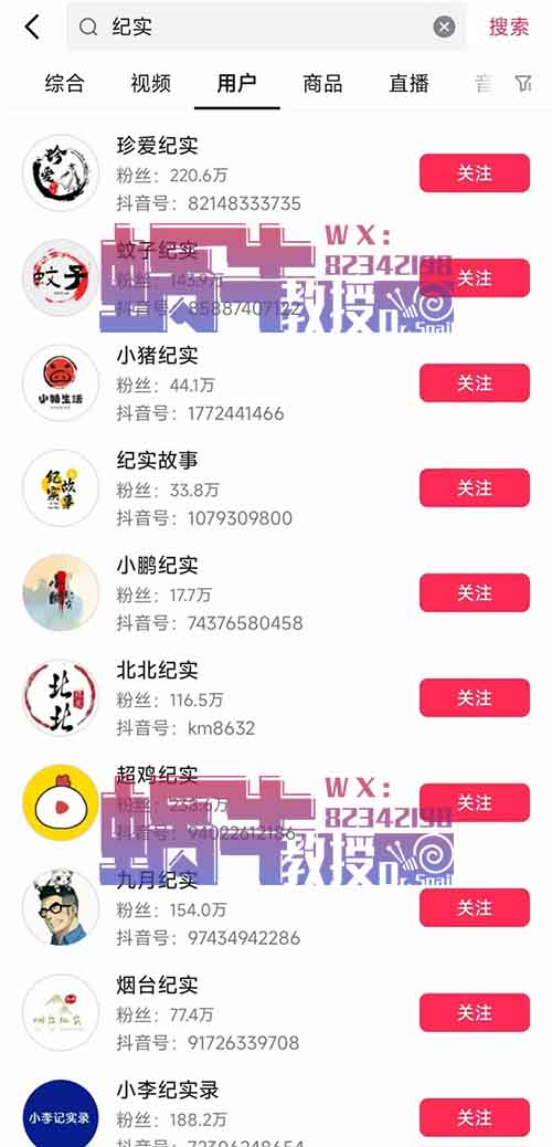 到抖音或快手去搜索“纪实”,就能找到很多账号,这些账号就是对标账号,也就是我们的素材库。