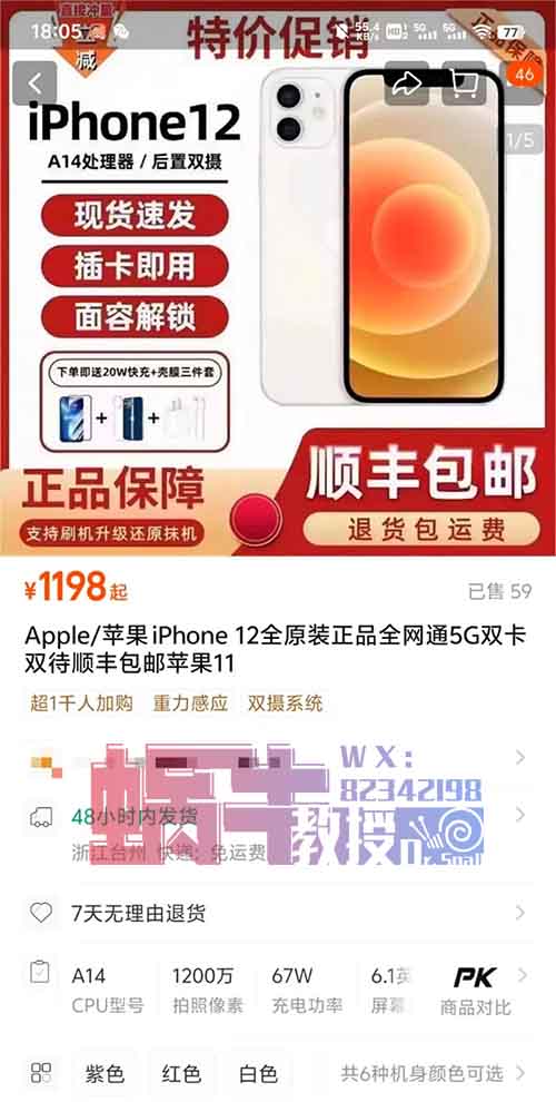 像这种苹果12,1100多,厂家都得去找他拿货,而且他还标的全新原装正品,咱们直接下单一个!