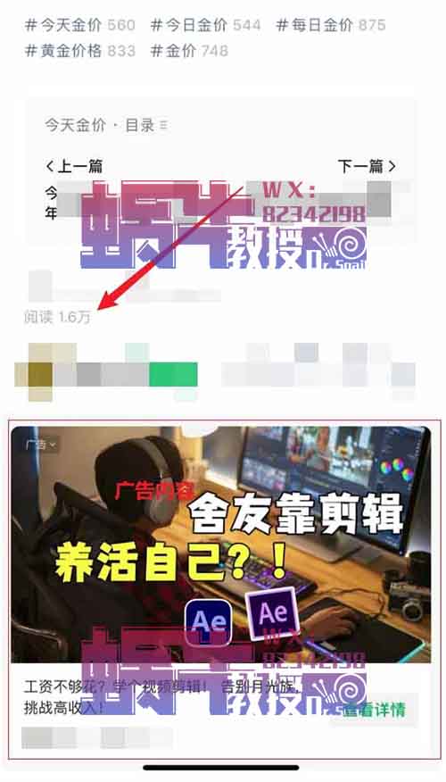 他每天主要就是把各种黄金价格做成内容,然后更新发布到公众号上,因为每天查询黄金价格的人特别多,所以他的内容很容易获得高曝光。