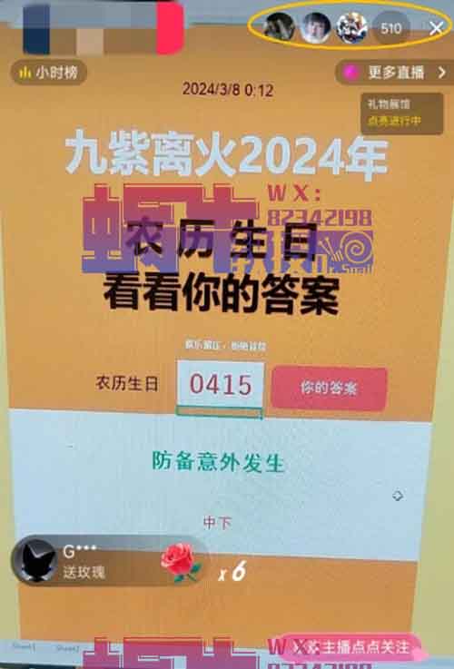 这个项目就是蜗牛教授的答案之书结合九紫离火直播,属于半无人直播类型。