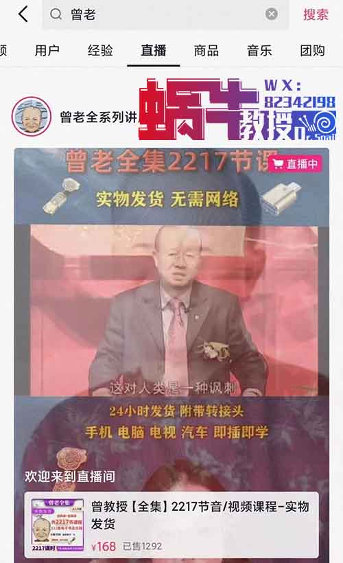 7、当账号积累一定流量后,可考虑开启直播卖货模式。在直播中播放曾老的视频,主播只需适度互动,具体操作可参照业内成功账号进行学习。