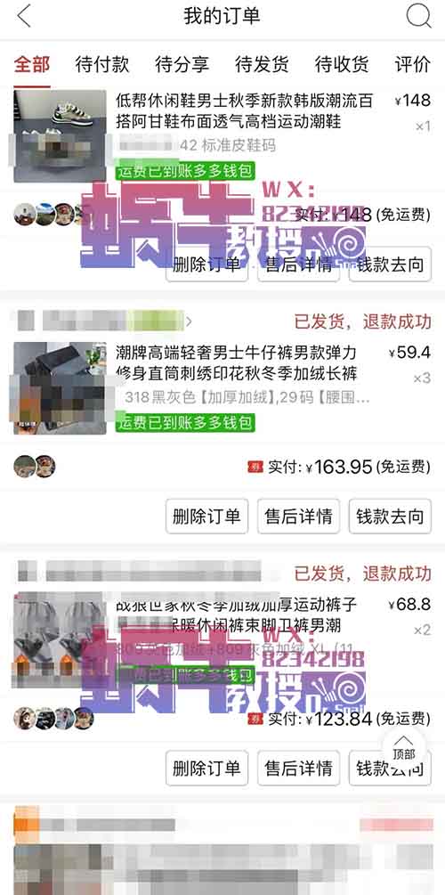 在精心培育账号一段时间后,便可在平台上寻觅心仪的商品,随即果断下单,一次性选购三至四件商品并完成支付。