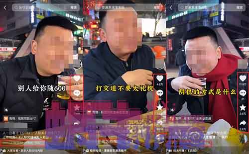 他的视频特色在于路边摊场景,边喝边与观众如朋友般聊天,