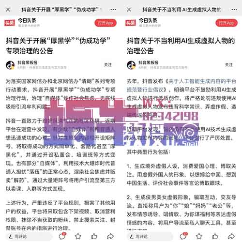 像各种的“AI生成虚拟人物”、“伪成功学”、“厚黑学”这几个大类型的账号都限流了,