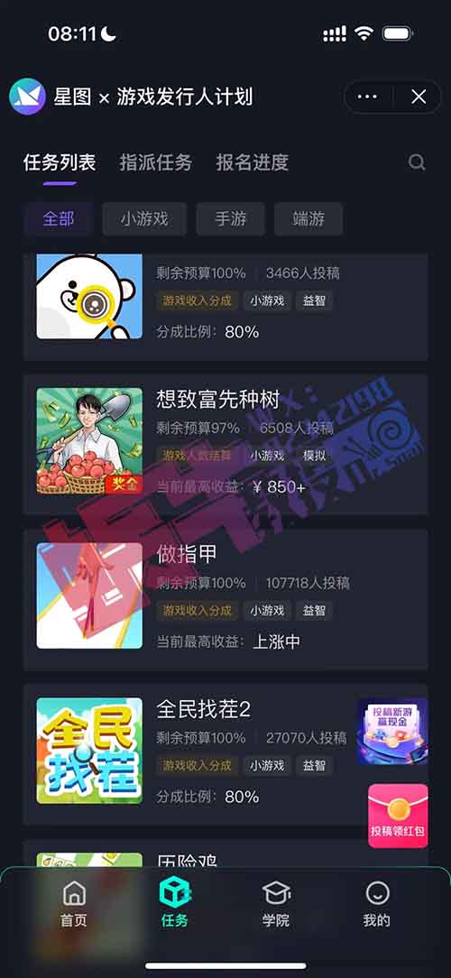 点击进去之后 点任务 就能看见很多游戏。我们选择一个收益最高的游戏记住名字,