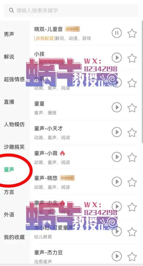 点开【童声】之后,会发现右边有一系列不同的童声风格可供选择。