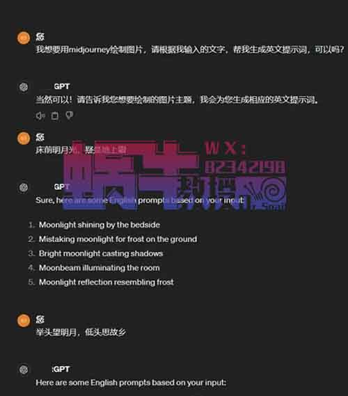 输入指令,让古诗文变成英文的绘画工具提示词。