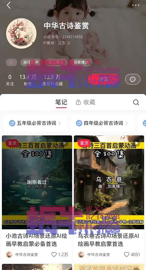 用AI来做古诗文的视频,这个号涨粉13.4万。