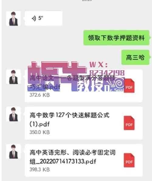 3、通过微信先免费分享一些资料。我说想获取押题集,对方说最终的押题要到五月中旬才会出,但先免费分享了一些学习资料。