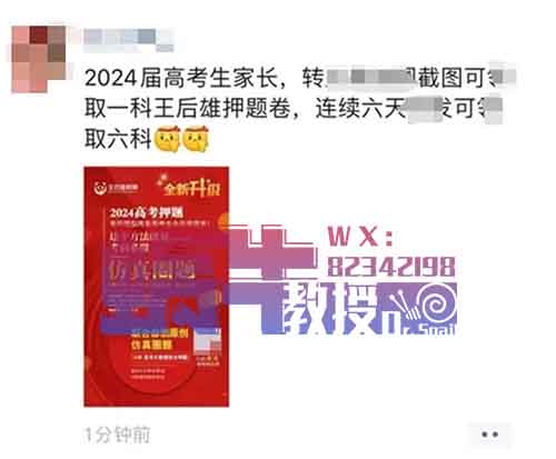 跟之前完全不一样,直接利用朋友圈实现流量裂变,不用在抖音或小红书累死累活发作品吸引粉丝。这种方法更适合已经有一定私域流量基础的人操作,只需收集押题资料,制作海报,然后在朋友圈推广即可。