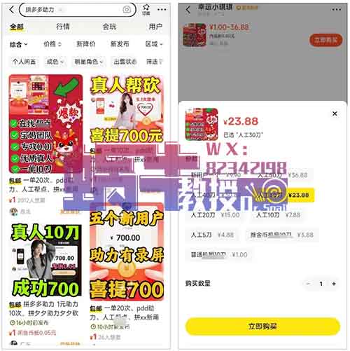 我们提供的产品服务就是拼夕夕的砍一刀服务,用户下单后就到低价的渠道去下单,做个中间商赚个差价。