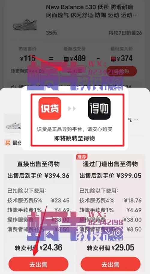 确定好想要转卖的商品,点“去出售”会弹出两种出售方式让你选择,直接选“出售到得物”就会自动跳转到得物平台。