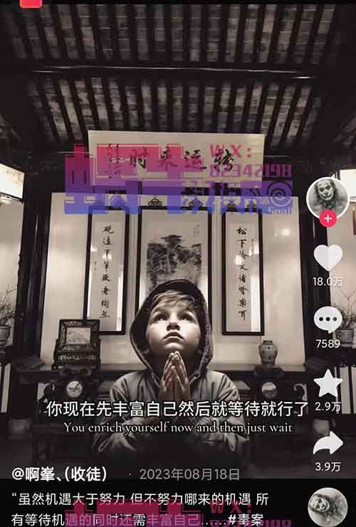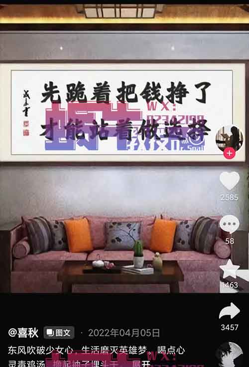 一张图片,再配上文案配音,制作出作品,挂载上取图小程序,喜欢图片的用户通过你的口令或是链接去拿图,不管是充值还是观看广告,你都会得到相应的收益。