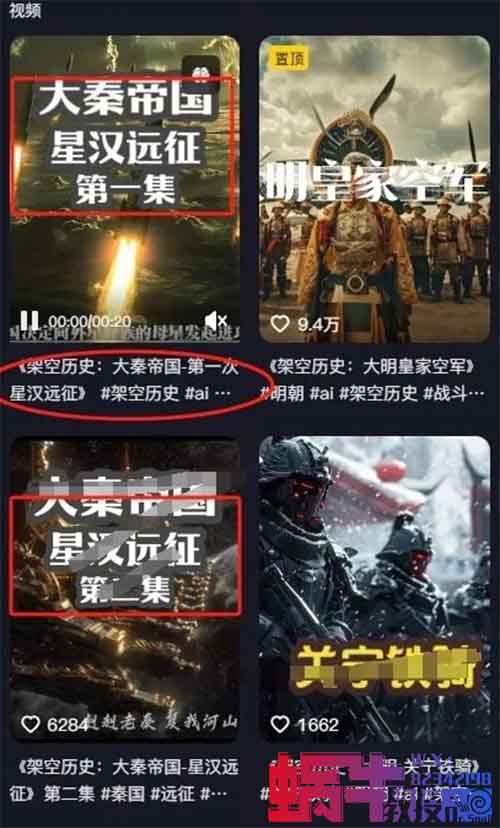 视频全部是用AI工具把历史和科幻进行结合,然后生成短片。