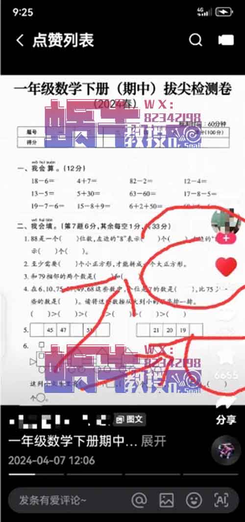 做教辅资料,其实最关键的就是引流。就像上面这位同学这样子,他是通过抖音,小红书等等平台去发布教辅资料的截图进行引流,每天都是稳稳当当,而且对于这种分享类的图文,特别受到一些家长的喜爱,所以很容易冲上热门。