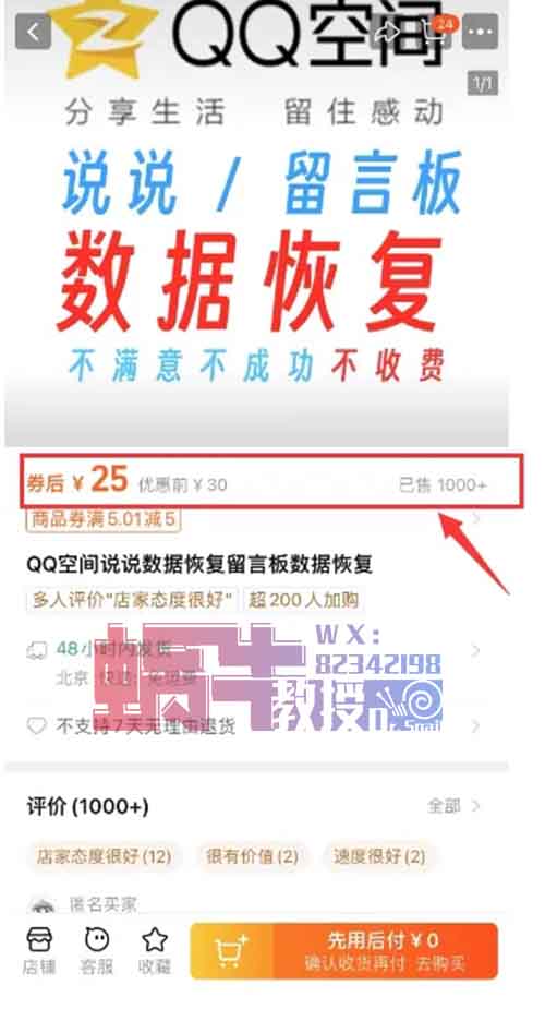 小众需求项目,QQ空间数据恢复一单25,销量1000+!