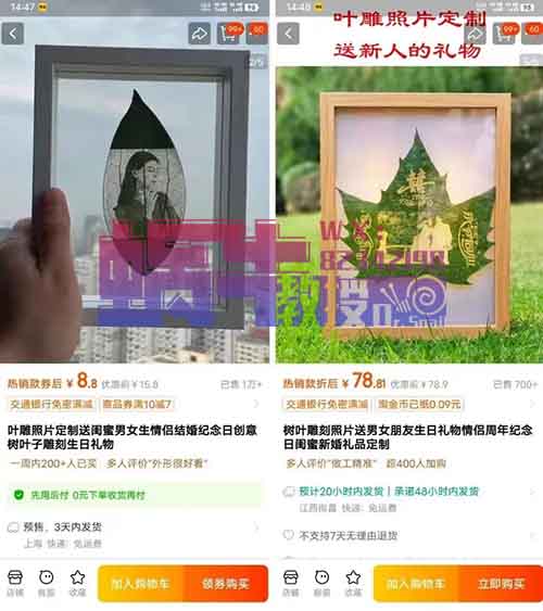 但是大家要知道一点,并不是只有龙眼树的叶子可以出售的,如果你的身边有其他的树,可以去电商平台看看,闲鱼、某多多、某宝都可以去看下还有没有出售其他叶子的,有的话直接上架,比如梧桐树叶,平安树叶都有很多人在卖,这两种很适合雕刻叶子照片。