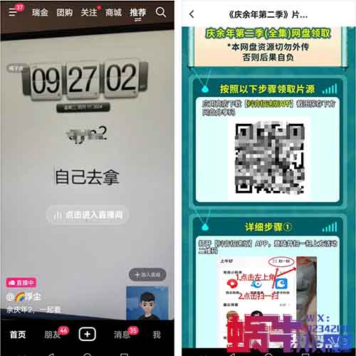 在b站、抖音、快手、小红书等短视频平台开直播第一步的内容,引流销售第二部的视频资源,配合网盘拉新再赚一波,也可以吸引到私域积累一波影视剧粉丝。同上不建议,有版权风险。