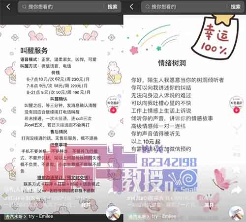 其实这种类似的还有很多,比如线上叫醒,游戏陪打,都是一样的模式。