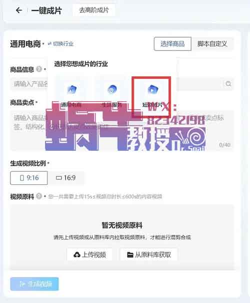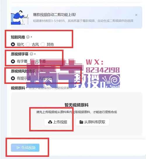 然后下面输入短剧名称,并选择创作好风格,然后上传素材并点击生成。稍等几分钟,片段就会生成完成。
