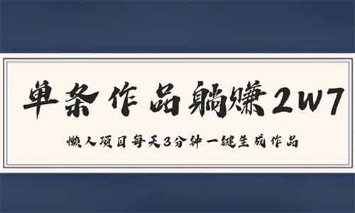单条作品躺赚2W7,懒人项目每天3分钟一键生成作品【附操作流程】