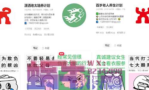 比如说这些账号,百岁老人养生计划、潇洒老太培养计划,其实都是最近才做起来的。矩阵式账号实际上就是从网上搜集各种养生小知识,做完一篇笔记就换一套模板,改几个字眼,很快就能做出几十个账号,门槛不高,流量却一点都不少,每一个都有几万粉丝,爆款笔记更是数不胜数。如果你觉得这些账号还不够简单,再看这个账号养生知识,加上一个简单的纸张背景笔记互动数据顾问。