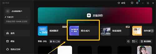这就是整个项目的逻辑,说到这里,有些人可能会比较懒,不想去百度上搜关于某些地方的夸赞类的文章,既然懒成这样,那就只能用懒的方法来做了,怎么做呢?同样打开剪映APP或电脑版剪映,打开后,有个“图文成片”,点一下,然后有个AI生成功能。