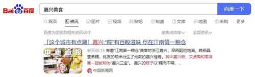 就比如说我家是浙江嘉兴的,那么我就去百度找一些关于夸嘉兴的新闻,比如搜:嘉兴美食、嘉兴景点、嘉兴名人....