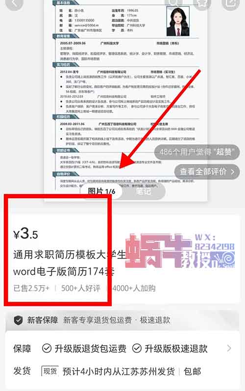 就是一个打包好的简历模板3.5元,没想到她卖了两万五千多单,到手全是纯利润。