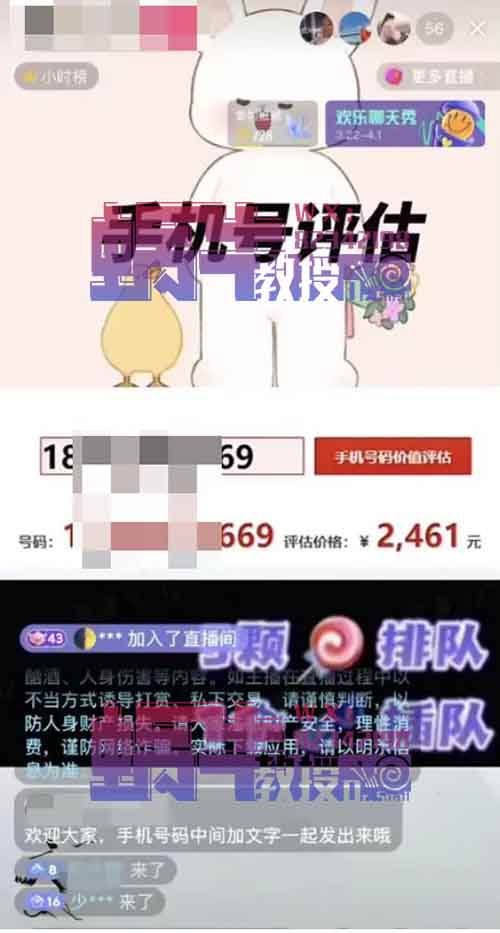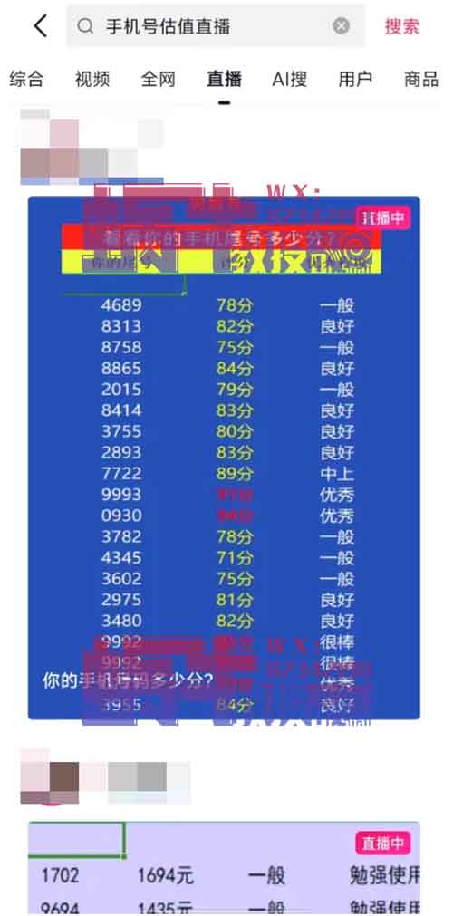 今天为大家分享一个“估值直播间项目玩法”,最近刷抖音的时候,发现一个有趣的直播玩法,项目名字叫做【手机号估计】,跟之前的qq号、车牌号估值直播一个玩法,并且热度非常高,流量还大。