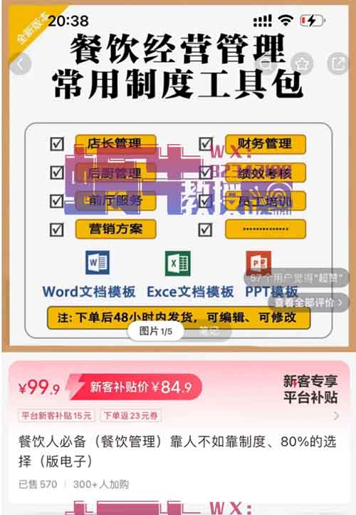 但是,我看到有人专门只做餐饮管理制度,直接开抖音小店挂商品,一份卖99.9,卖500多份,搞了6W+。