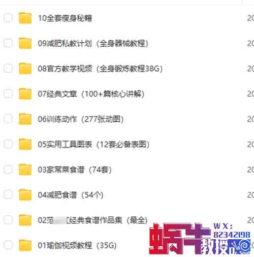 不说别的高大上产品和一对一模式,就仅我之前收集过的一份完整的减肥健身虚拟资源为例。
