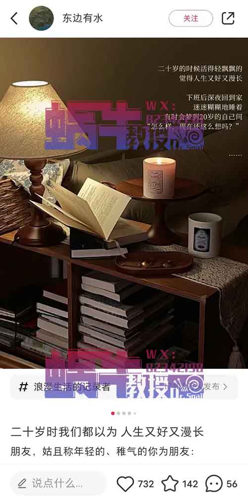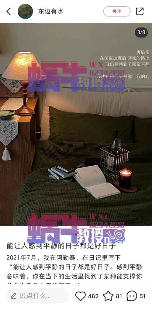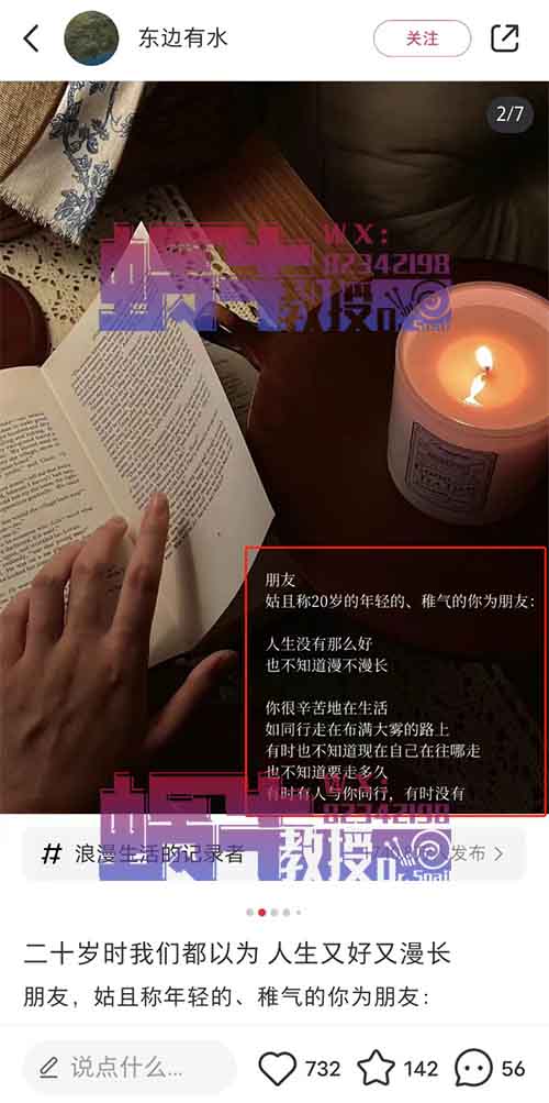 博主的照片里面,一般都会配有小字,一般都是比较简短的文字,一般都来自于书籍上的文字,一方面可以起到丰富内容的作用,还会引起大家的好奇心,留住观众~