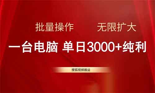 搜狐视频搬运,一台电脑每天收入3000+,可批量无限放大